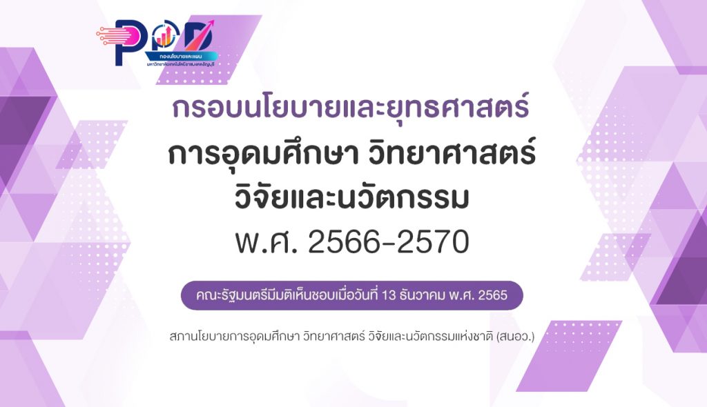 ธันวาคม 19, 2022Published by สุภภักดิ์ รักษ์แก้ว on ธันวาคม 19, 2022กรอบนโยบายและยุทธศาสตร์ การอุดมศึกษา วิทยาศาสตร์ วิจัย และนวัตกรรม พ.ศ.2566-2570