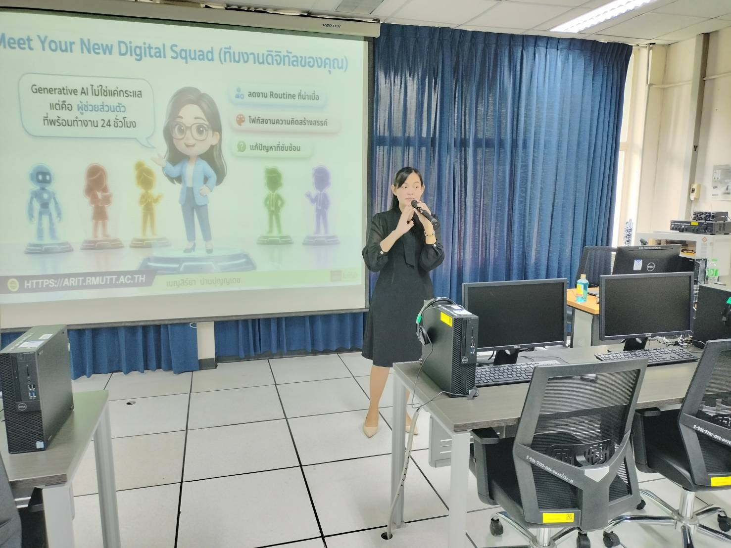 เมื่อวันที่ 25 กุมภาพันธ์ 2569 กองนโยบายและแผน ได้เข้าร่วมโครงการอบรมเชิงปฏิบัติการหลักสูตร "AI Assistant เครื่องมืออัจฉริยะเพื่อเพิ่มประสิทธิภาพการทำงาน" ณ ห้องอบรม 1 สำนักวิทยบริการและเทคโนโลยีสารสนเทศ มทร.ธัญบุรี โดยได้รับเกียรติจาก คุณเบญสิร์ยา ปานปุญญเดช และคุณวิริยา สมบูรณ์ผล เป็นวิทยากรผู้เชี่ยวชาญ