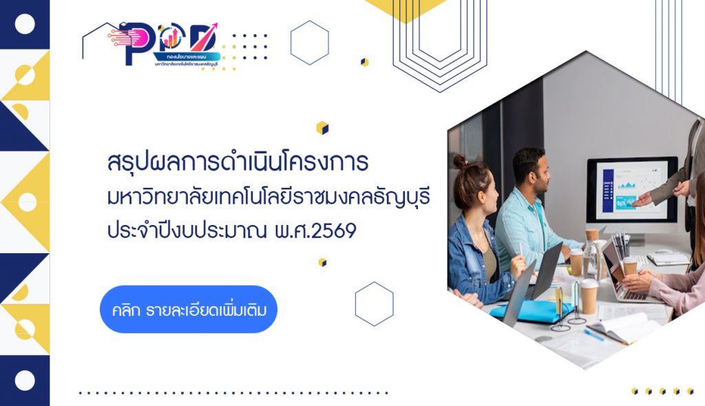 กุมภาพันธ์ 28, 2026Published by สุภภักดิ์ รักษ์แก้ว on กุมภาพันธ์ 28, 2026สรุปผลการดำเนินโครงการ มหาวิทยาลัยเทคโนโลยีราชมงคลธัญบุรี ประจำปีงบประมาณ พ.ศ.2569