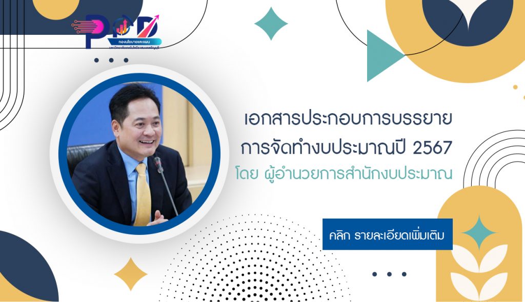 มกราคม 13, 2023Published by สุภภักดิ์ รักษ์แก้ว on มกราคม 13, 2023เอกสารประกอบการบรรยายการจัดทำงบประมาณปี 2567 โดย นายกรัฐมนตรี