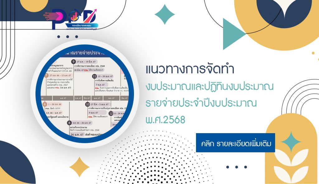ตุลาคม 21, 2023Published by สุภภักดิ์ รักษ์แก้ว on ตุลาคม 21, 2023แนวทางการจัดทำงบประมาณและปฏิทินงบประมาณรายจ่ายประจำปีงบประมาณ พ.ศ.2568