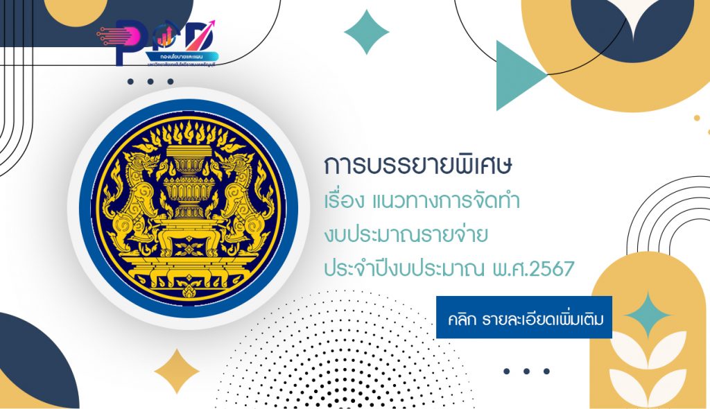 มกราคม 13, 2023Published by สุภภักดิ์ รักษ์แก้ว on มกราคม 13, 2023เอกสารประกอบการบรรยายการจัดทำงบประมาณปี 2567 โดย ผู้อำนวยการสำนักงบประมาณ